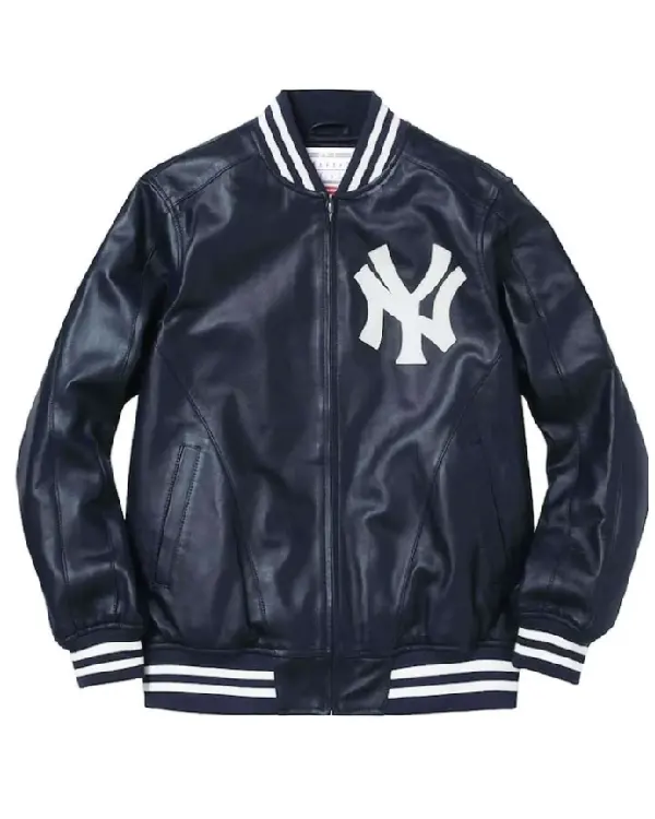 Buy Supreme New York Yankees Full-Zip Varsity Leather Jacket Sale