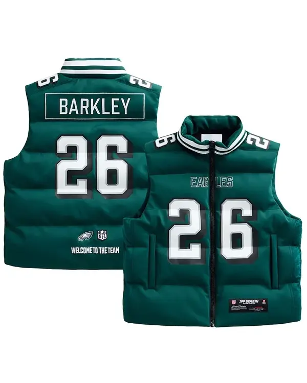 Off Season X NFL Philadelphia Eagles Saquon Barkley and Jalen Hurts Player Green Puffer Vest
