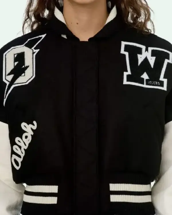 Home / Products / Varsity Jackets / Off White Cropped Black and White Varsity Jacket