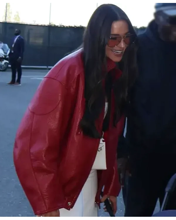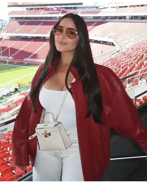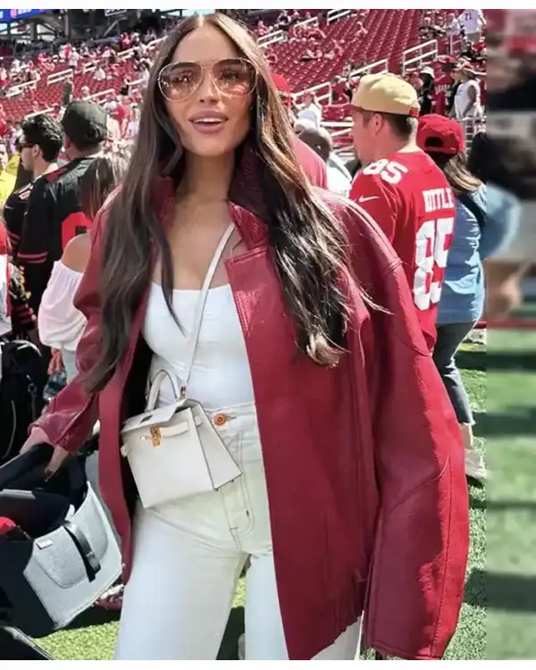 Buy NFL San Francisco 49ers 2025 Olivia Culpo Red Leather Jacket