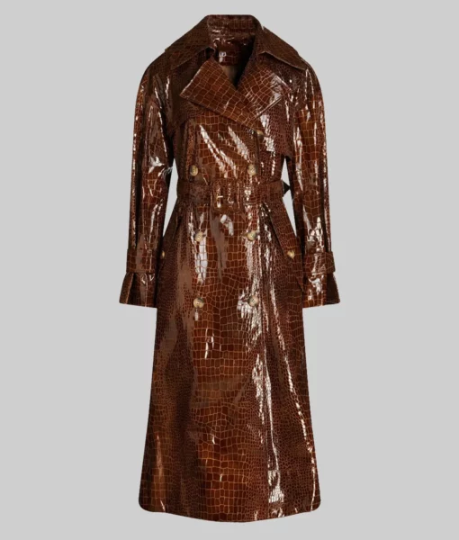 Order Only Murders in the Building Selena Gomez Croc Effect Brown Trench Coat Sale