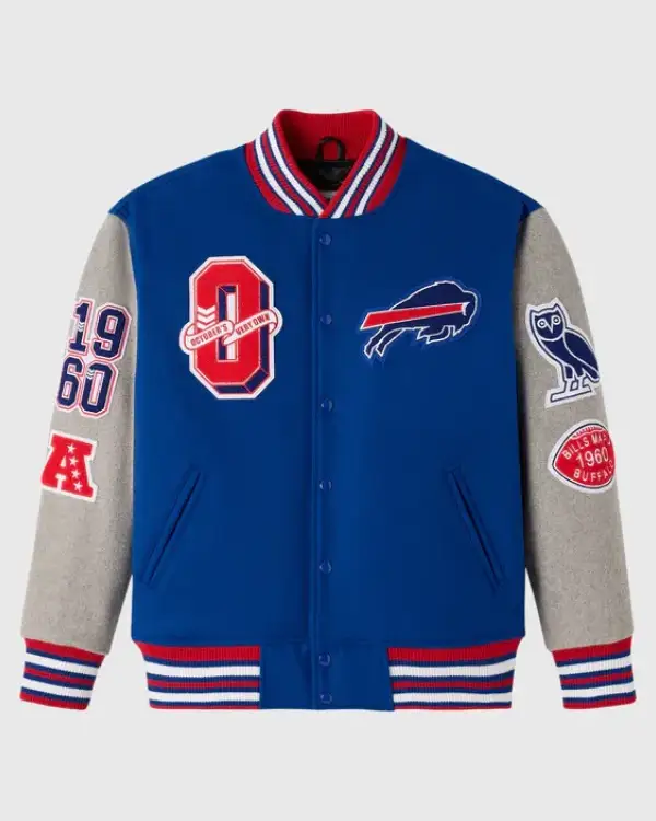 Shop Recreation – Buffalo Bills OVO Wool Varsity Jacket in Blue & Grey 2025 Sale