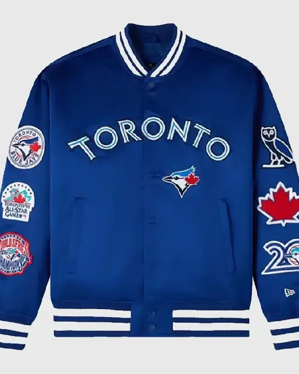 Shop Join the Crew in the OVO × New Era × MLB Toronto Varsity Jacket Sale