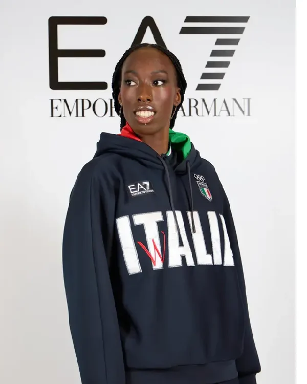 Shop Olympic Games Paris 2024 Opening Ceremony Italy Team EA7 Emporio Armani Navy Hoodie Sale