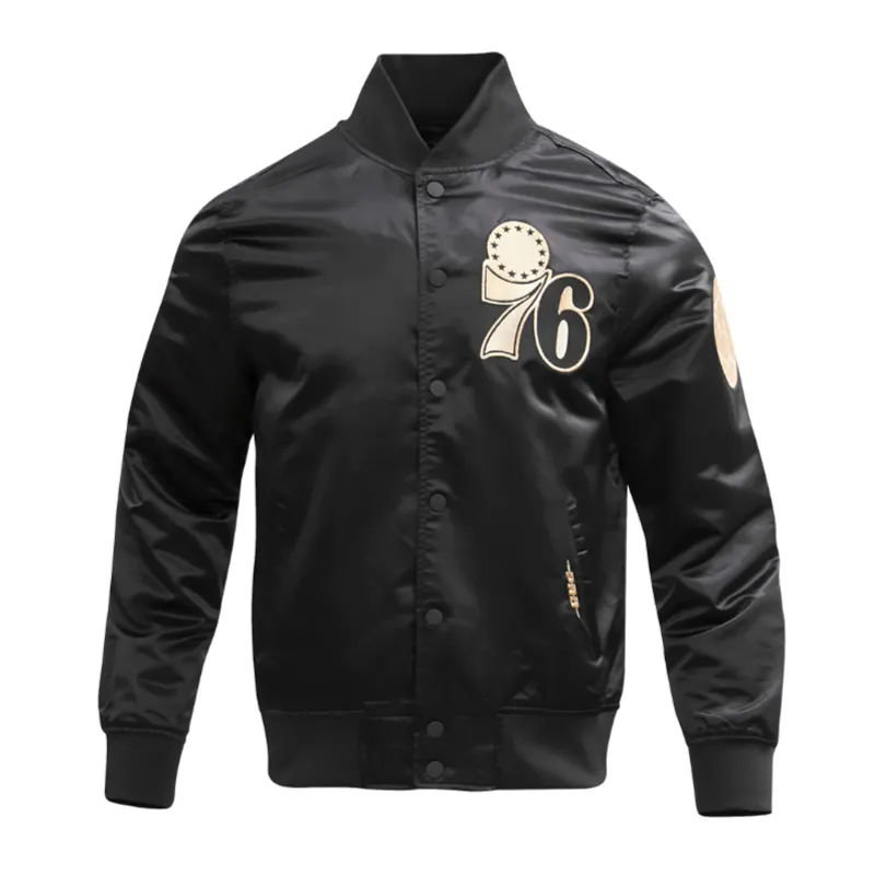 Philadelphia 76ers Gold Logo Black Full-Snap Satin Jacket
