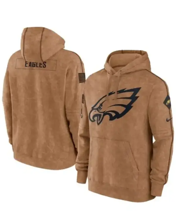 Buy Philadelphia Eagles Salute To Service Club 2023 Brown Pullover Hoodie Sale