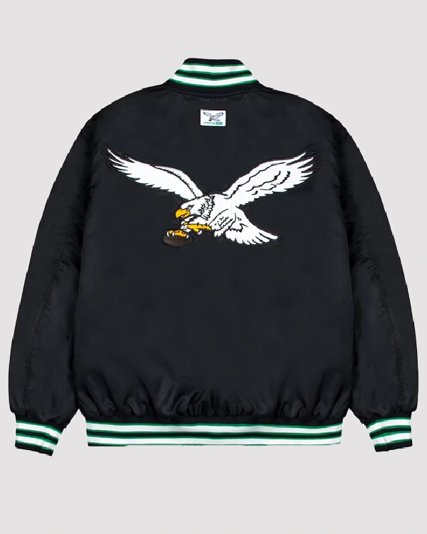 Buy Men’s Philadelphia Eagles GOLF WANG Black Satin Full-Snap Bomber Jacket Sale