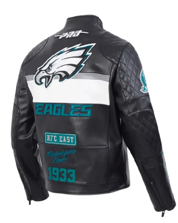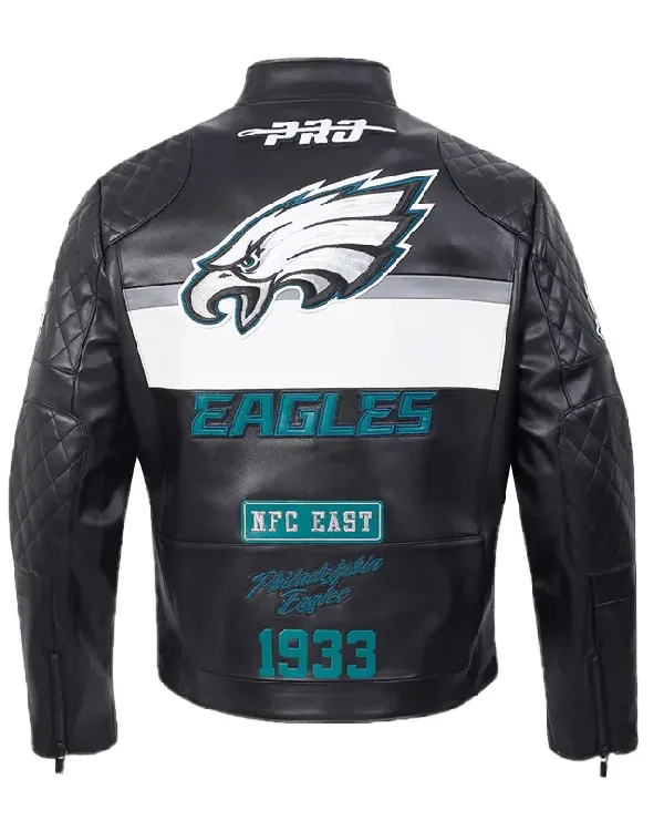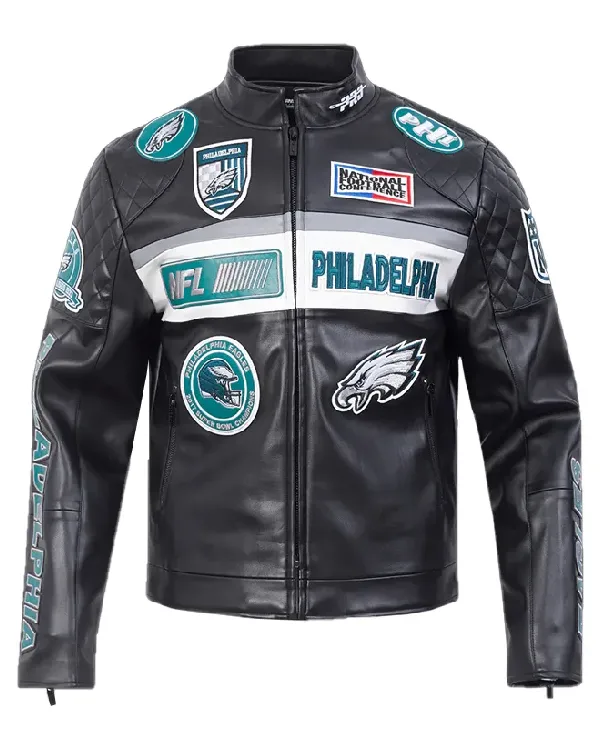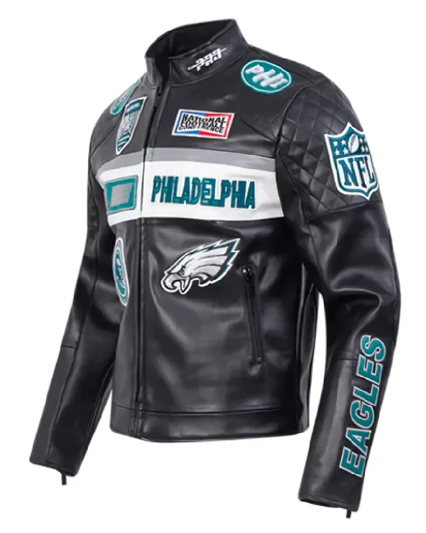 Buy Philadelphia Eagles Moto Black Leather Jacket Sale