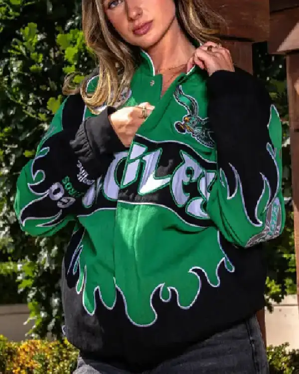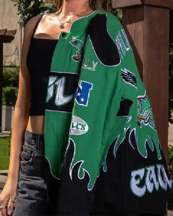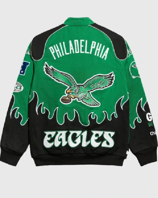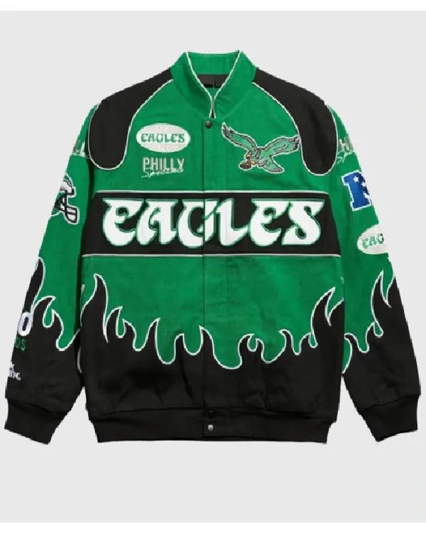 Buy Philadelphia Eagles Kelly Green Bomber Racing Jacket Sale