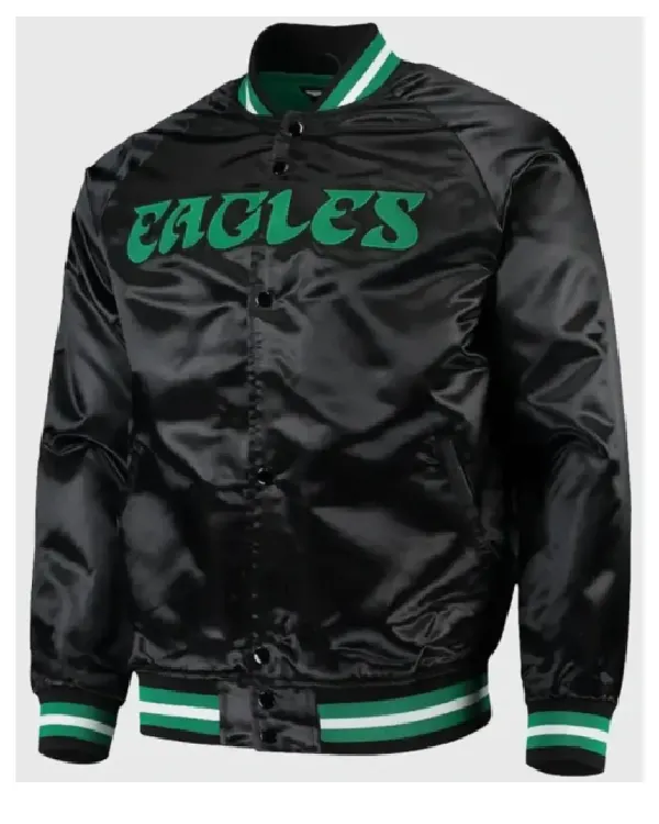 Black Philadelphia Eagles Satin Full-Button Jacket