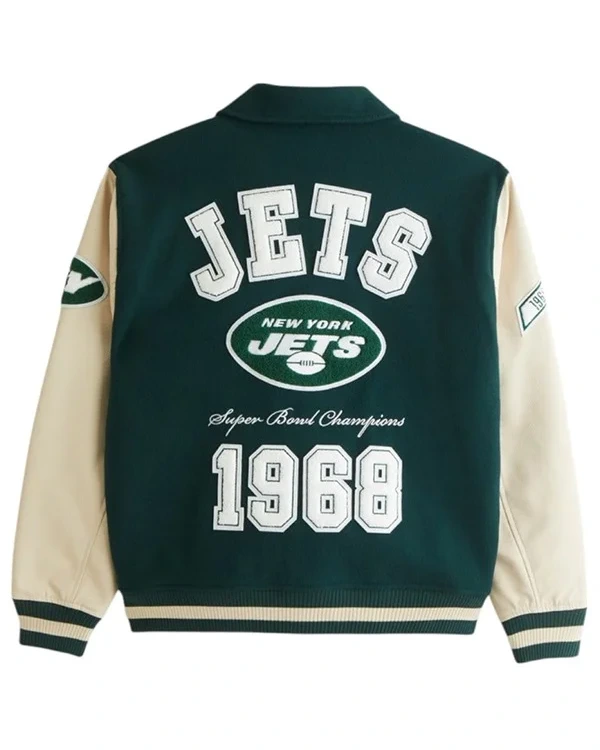 NFL 1968 NY Jets Super Bowl Champions Abercrombie 2024 Green and Off White Varsity Jacket