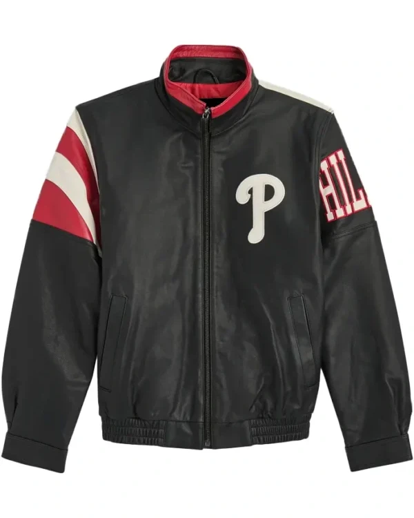 Shop Philadelphia Phillies Vintage Full-Zipper Black Real Leather Jacket Sale