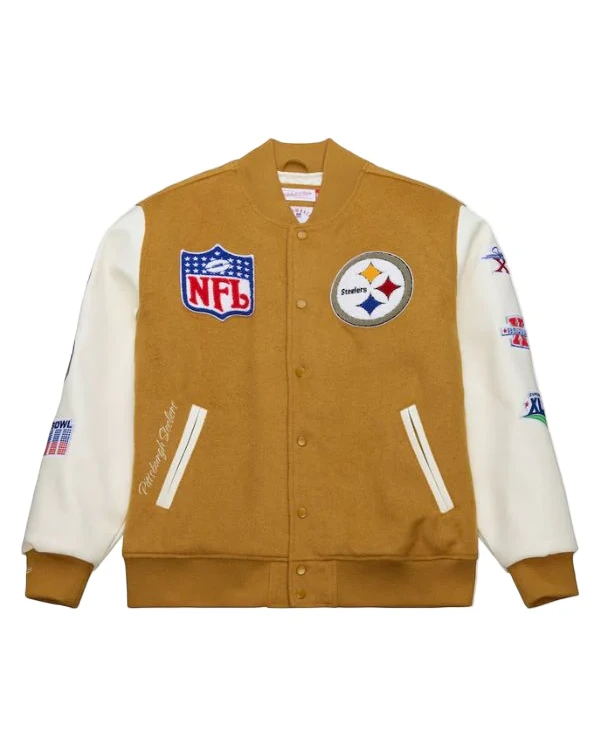 Pittsburgh Steelers Brown/White Dusted Varsity Jacket
