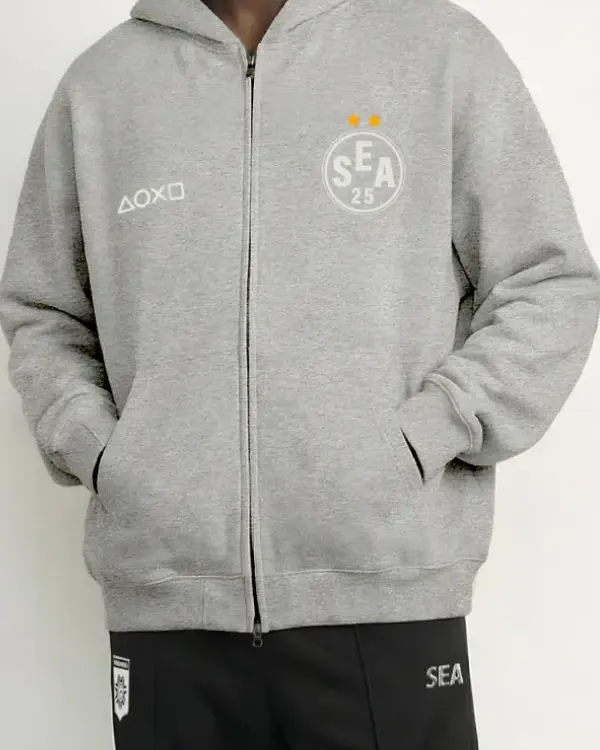 Recreated – Shop Playstation x Wind and Sea Team Zip-Up Hoodie Black and Grey Sale