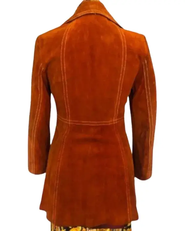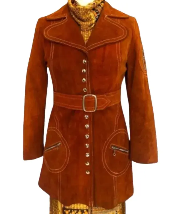 Shop Poker Face 2025 Natasha Lyonne Charlie’s 1970s Brown Suede Leather Belted Coat with Silver Buttons Sale