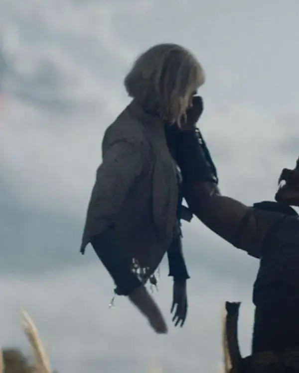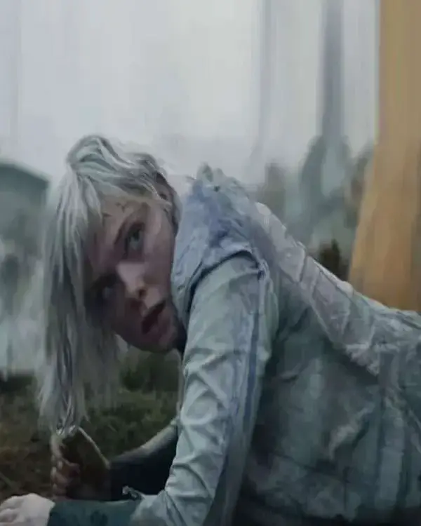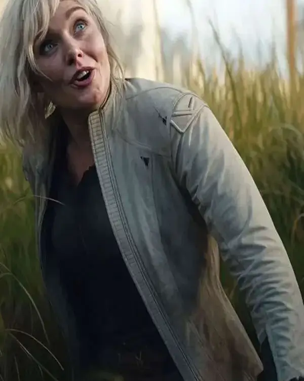 Buy Elle Fanning Predator Badlands 2025 Thia White Leather Jacket
