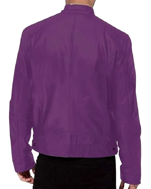 Re-Creation Buy Men’s Bold Purple Leather Moto Jacket For Sale