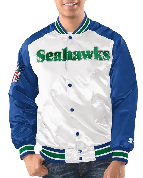 White/Blue Seattle Seahawks Renegade Full-Snap Satin Jacket