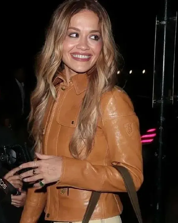 Home / Products / Womens Leather Jacket / Rita Ora Brown Leather Jacket