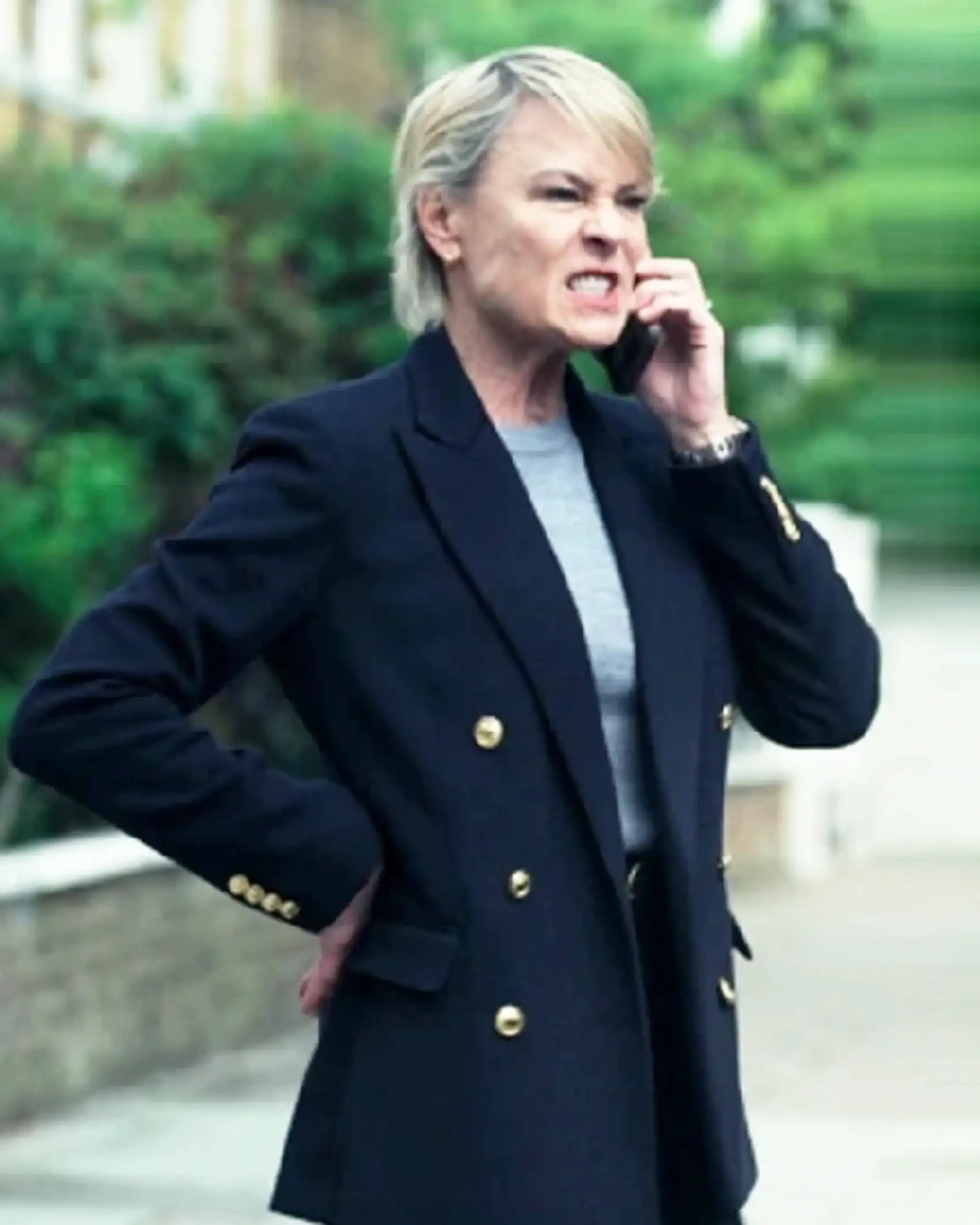 Shop Laura Sanderson TV Series The Girlfriend 2025 Robin Wright Navy Blue Blazer Sale