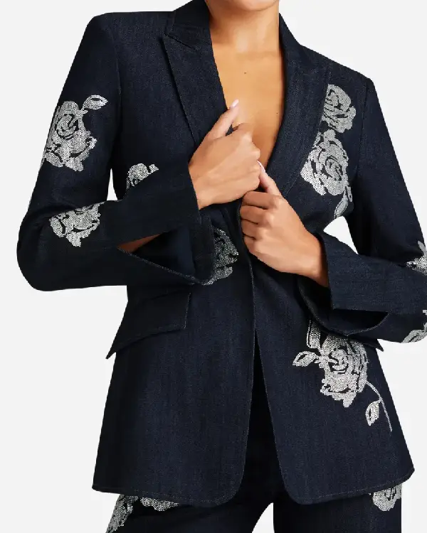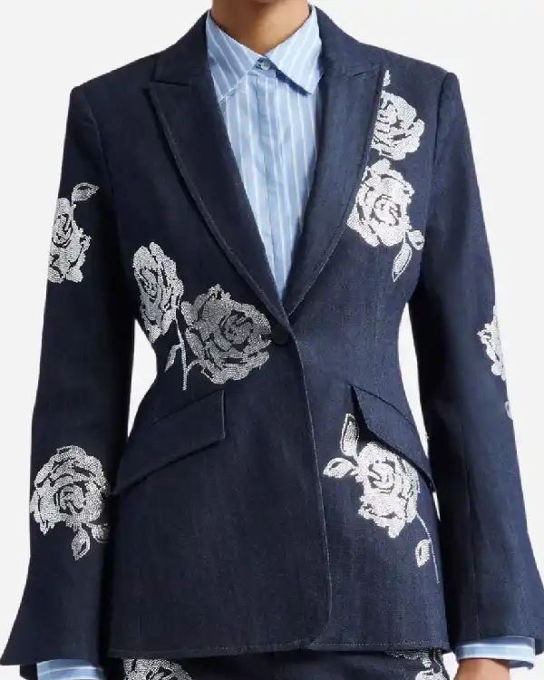 Shop Ruby Marino Electric Bloom S01 2025 TV Series Tulip Aoki Rose Embroidry Denim Blazer Sale
