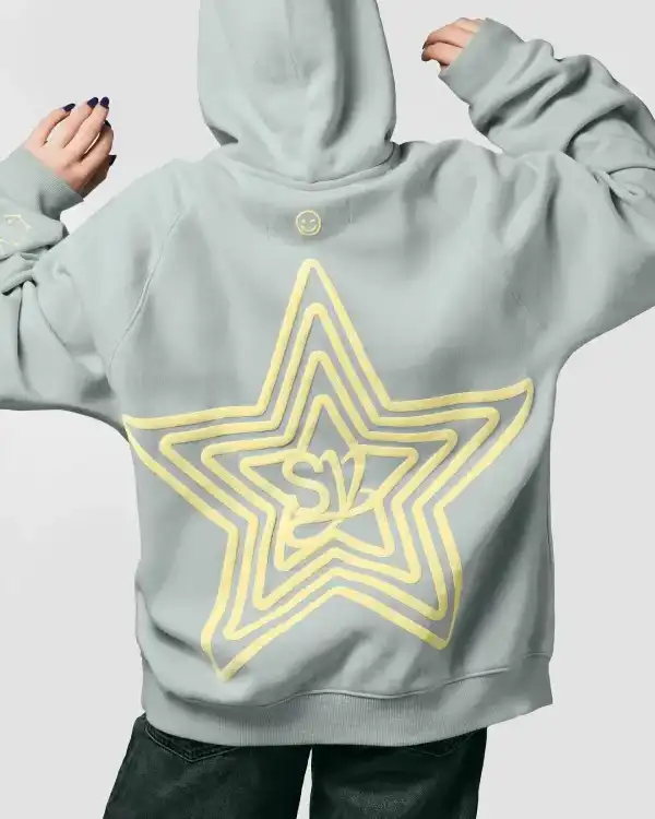 Spread good vibes with the Salish Matter Sincerely Yours Holiday Hoodie. Crafted from soft, cozy fleece, this light grey hoodie features a relaxed fit for all-season comfort. The front showcases a raised “Sincerely Yours” script, while the back boasts a large star, constellation details along the sleeves, and a playful smiley face on the cuff—perfect for discovering little details that make it unique.
