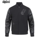 San Antonio Spurs Triple Black Varsity Wool-Leather Jacket