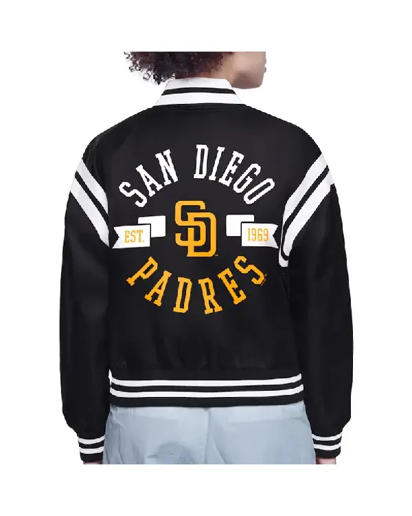 Shop San Diego Padres Printed Logo Full-Snap Varsity Satin Jacket For Sale