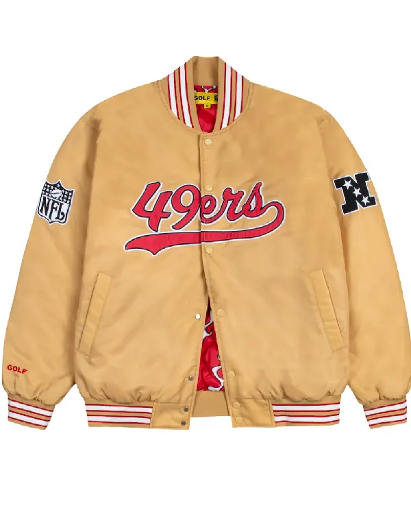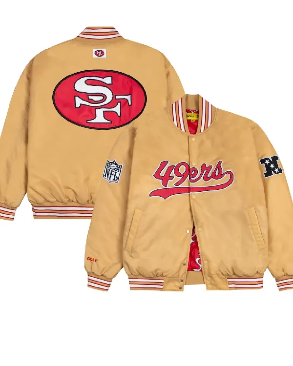 San Francisco 49ers GOLF WANG Gold Satin Bomber Jacket