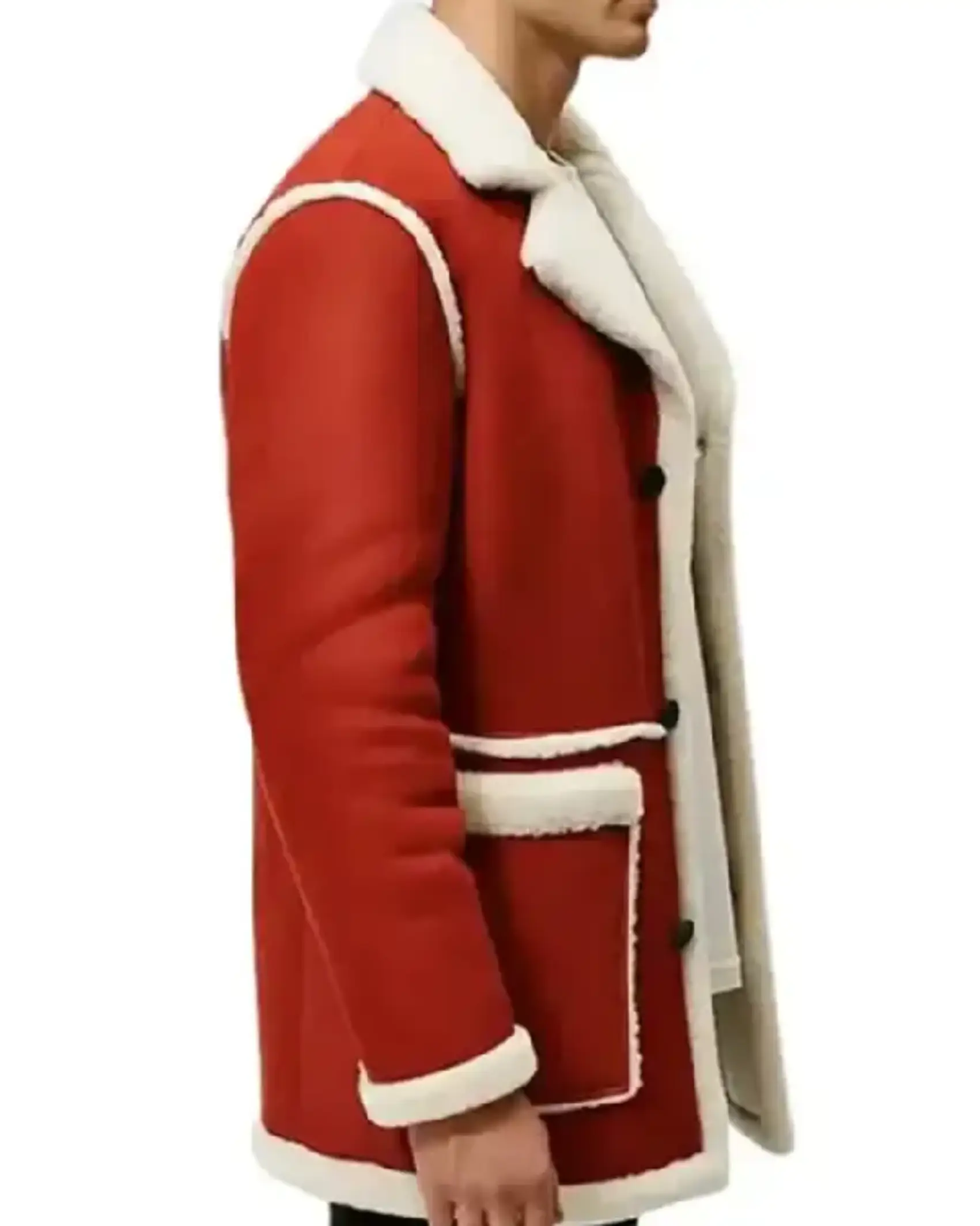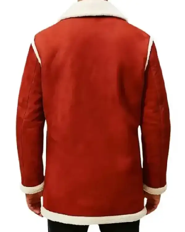 Shop Santa Claus Red Suede Leather Shearling Jacket for Christmas Sale