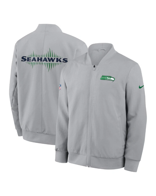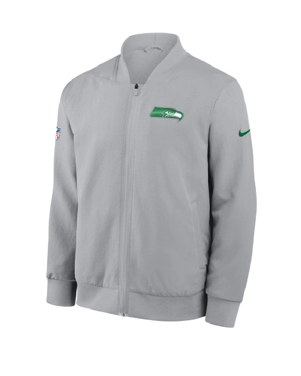 Shop Men’s Seattle Seahawks Nike Gray 2025 Rivalries Collection Sideline Full-Zip Bomber Jacket Sale