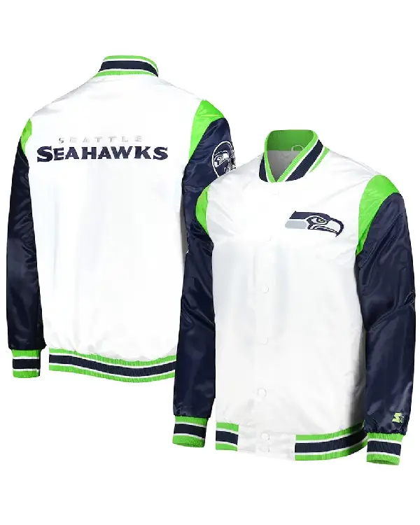 Seattle Seahawks Throwback Warm Up Pitch Varsity Satin Jacket
