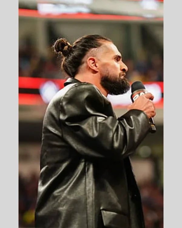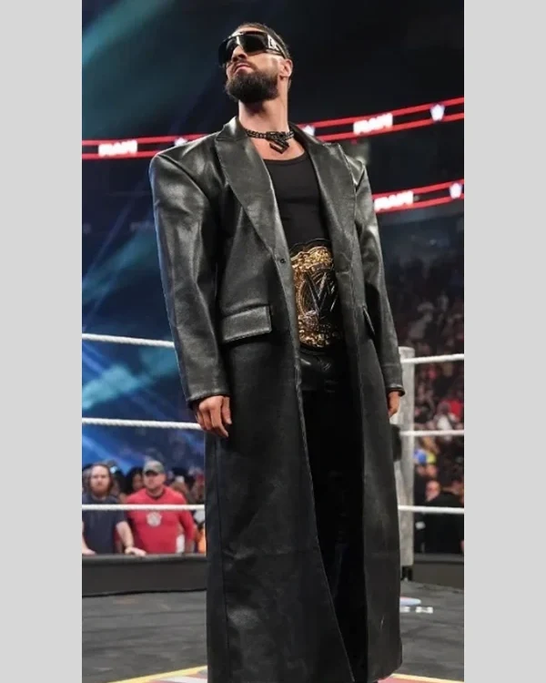 Buy Seth Rollins Lenovo Center Monday Night RAW 2025 Black Leather Long Coat Black Sale