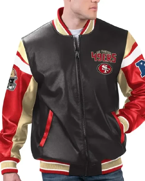 Buy San Francisco 49ers Black Bomber Full-Zip Leather Jacket For Unisex Sale