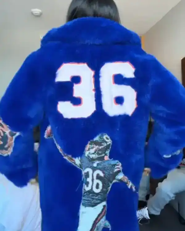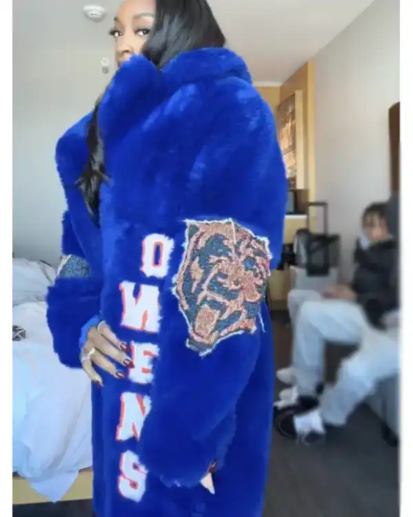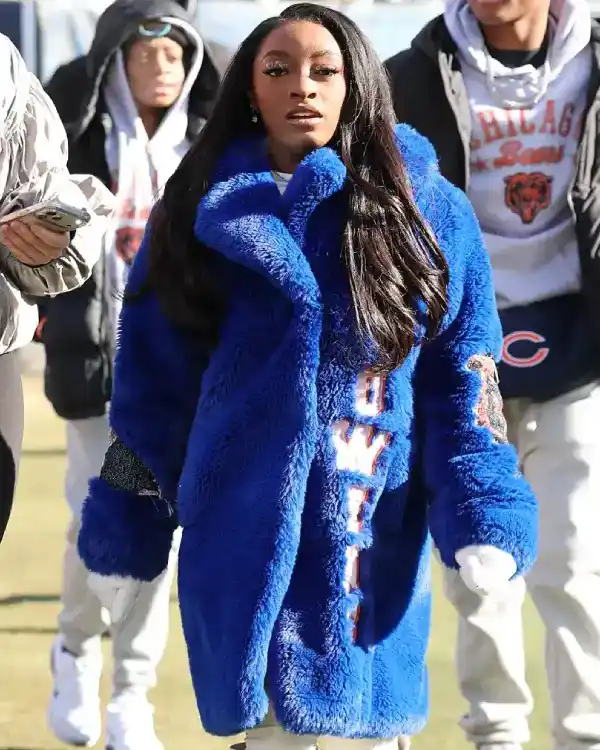 Buy American Gymnast Simone Biles Chicago Bears 36 Blue Shearling Fur Owens Coat