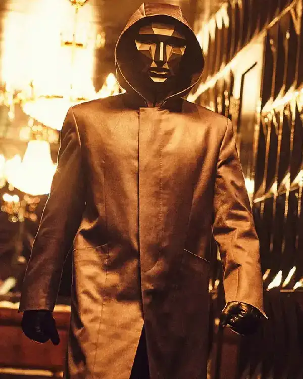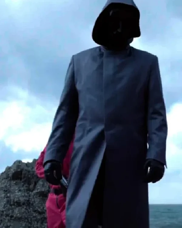 Shop Tom Choi TV Series Squid Game Frontman Black Hooded Long Coat Sale