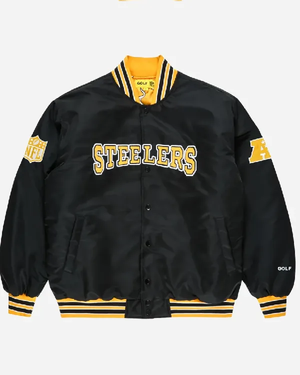 Buy Golf Wang Pittsburgh Steelers Black Full-Snap Satin Bomber Jacket