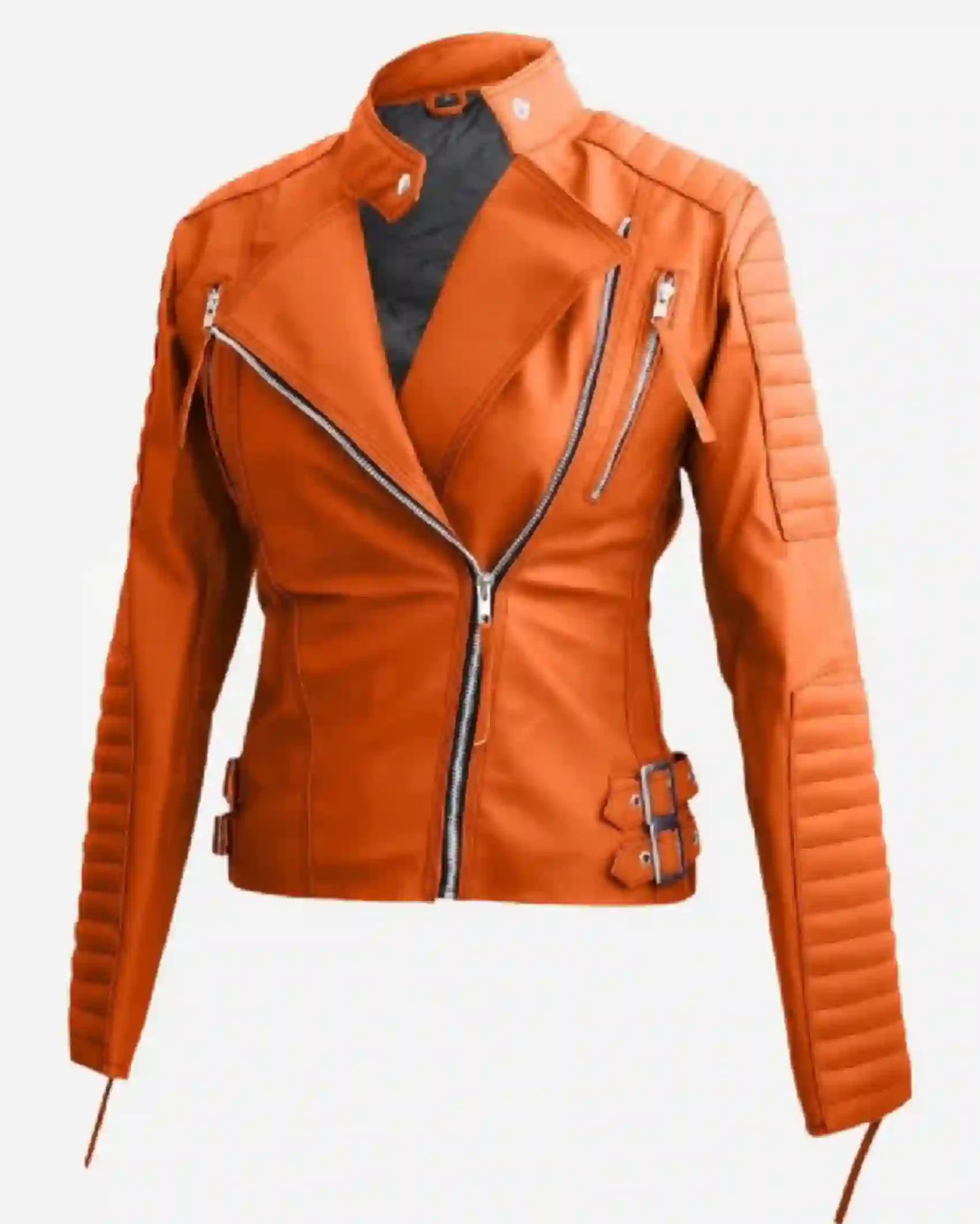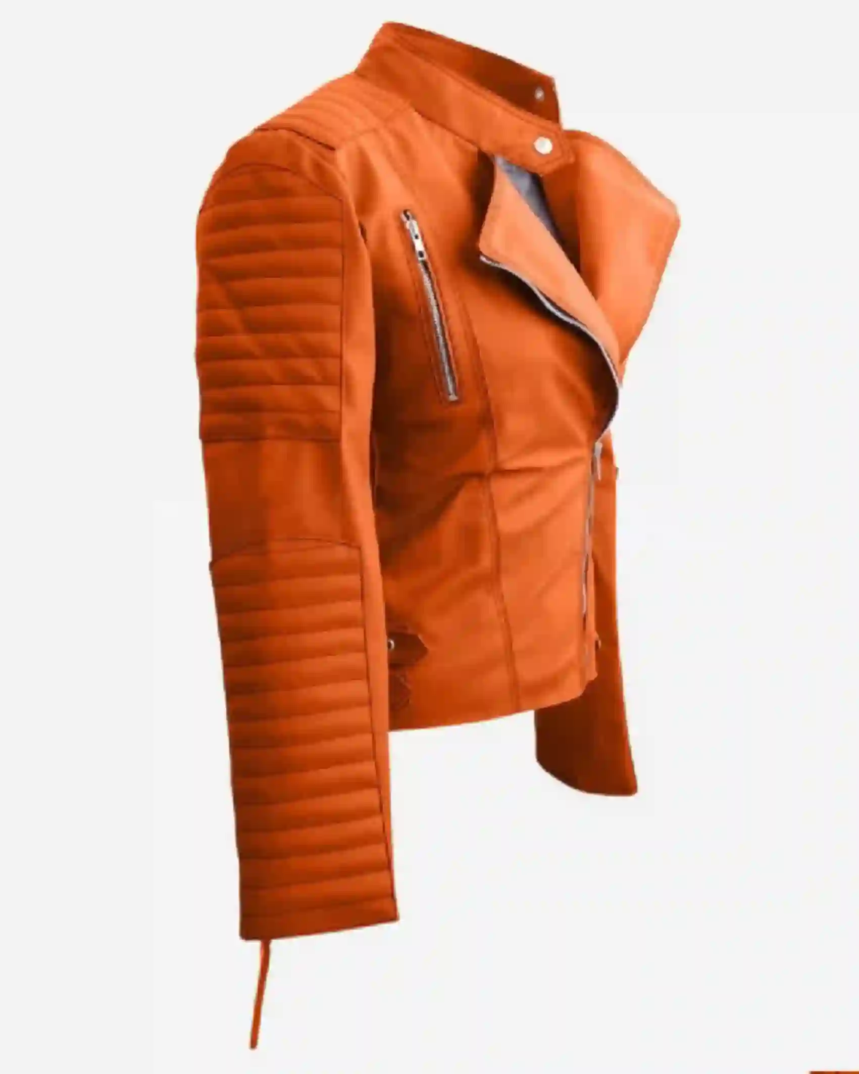 Shop Women’s Striking Brando Orange Faux Leather Jacket Sale