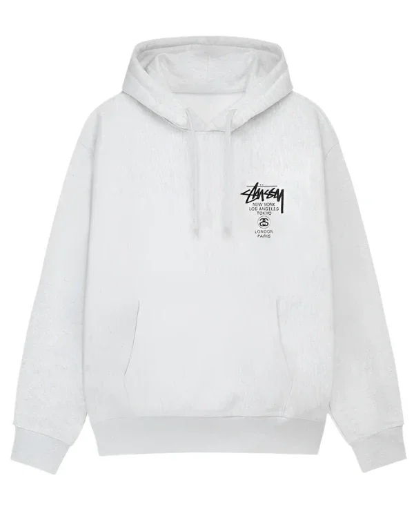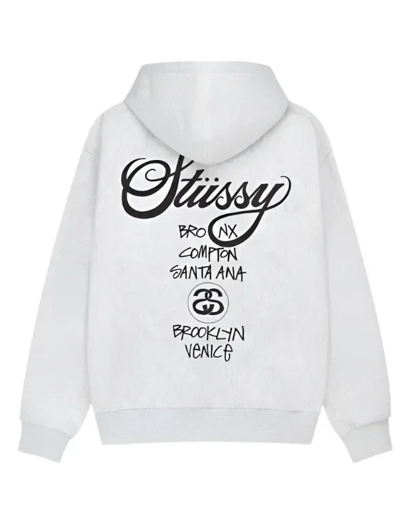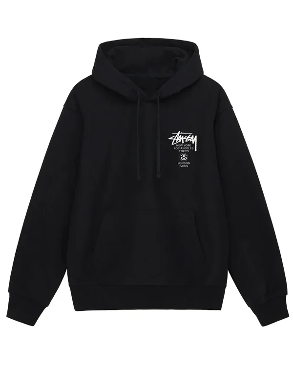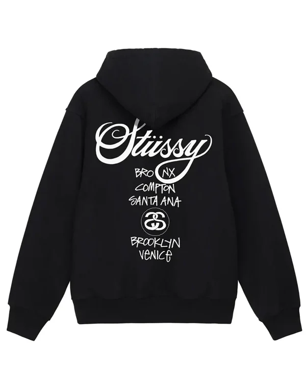 Shop Stussy World Tour Pullover Black and White Hoodie Sale
