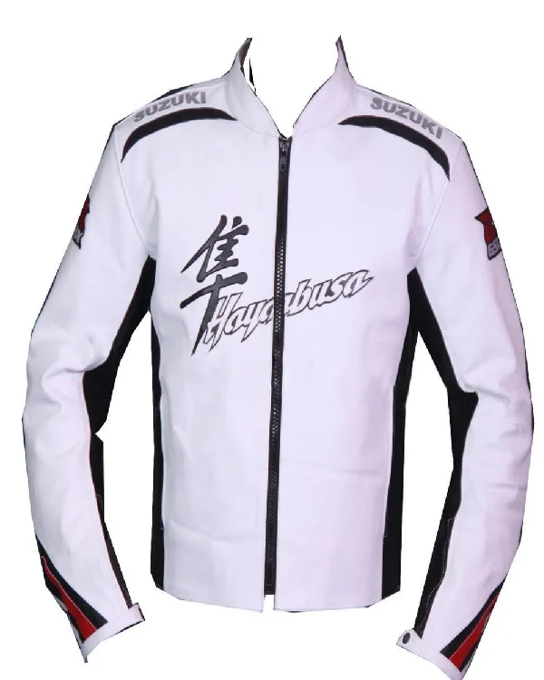 Buy Suzuki Hayabusa White Biker Leather Jacket Sale
