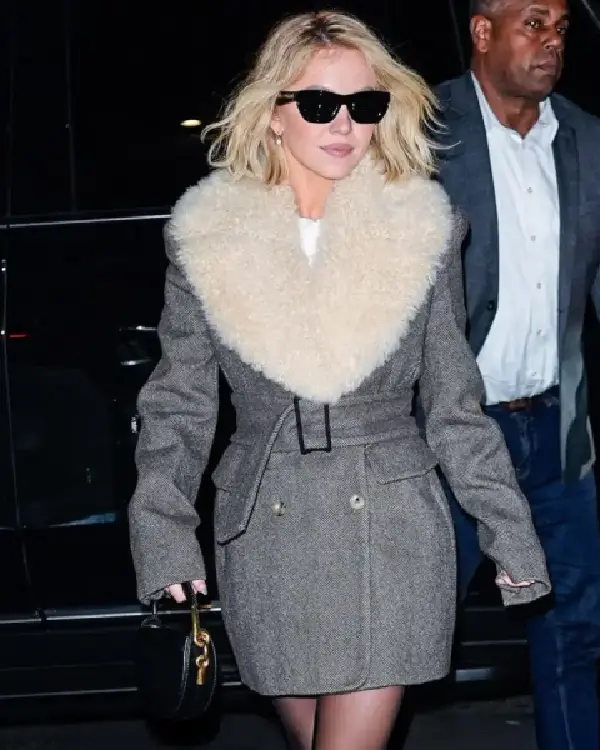 Buy Sydney Sweeney New York City 2025 Shearling Coat Sale