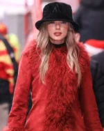 Home / Products / Womens Leather Jacket / Taylor Swift Chiefs Game Red Fur Coat