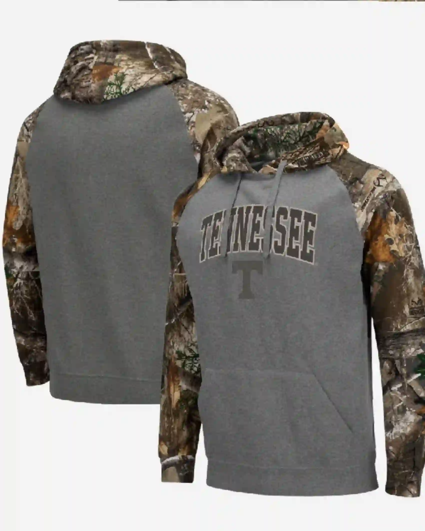 Buy Men’s Tennessee Volunteers Colosseum Arch & Logo Realtree Camo Pullover Hoodie Sale