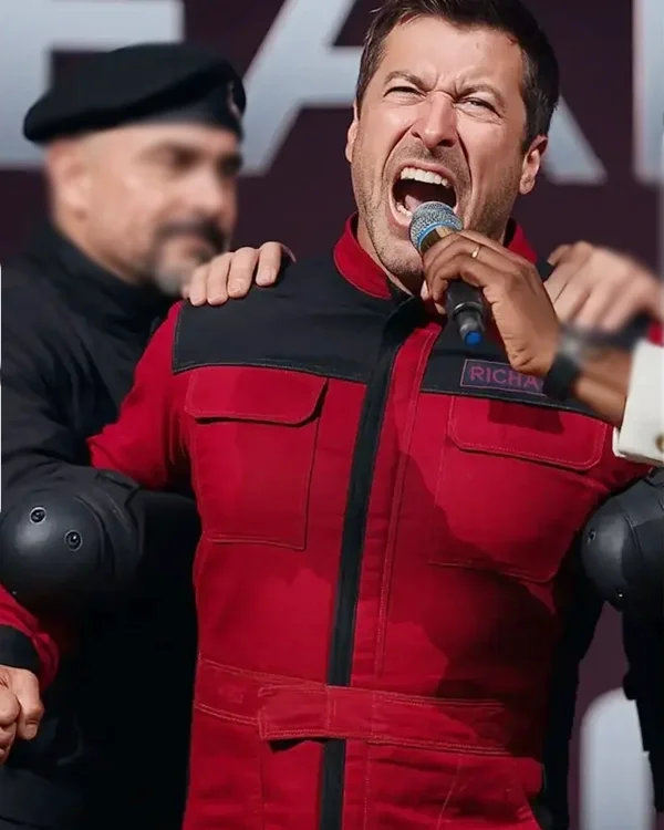 Shop Ben Richards Film The Running Man 2025 Glen Powell Red Jacket Sale