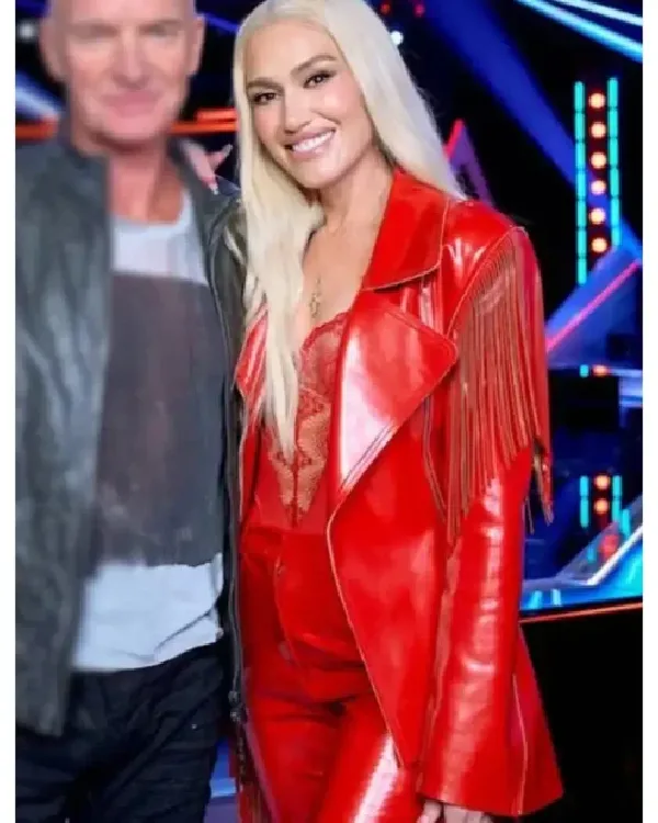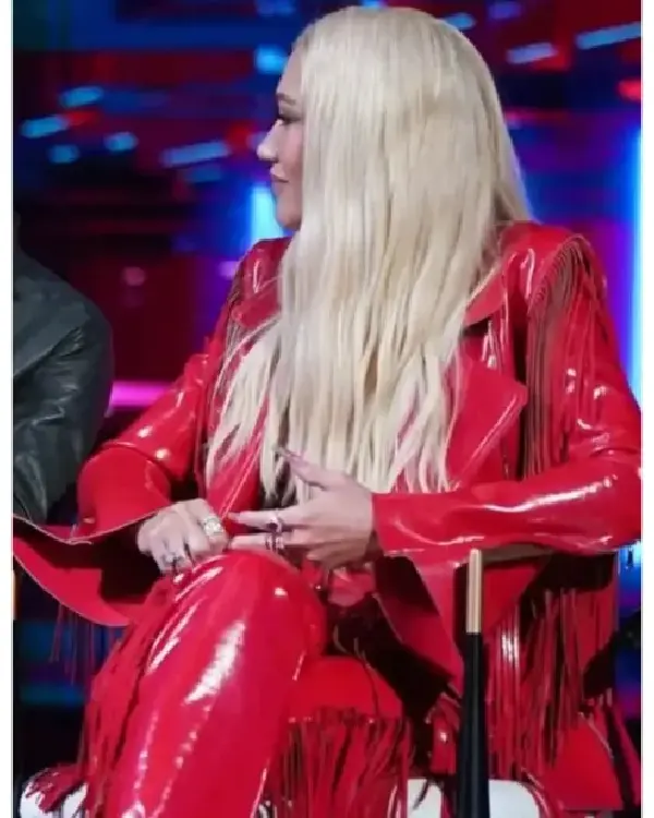 The Voice S26 Gwen Stefani Red Leather Fringe Blazer