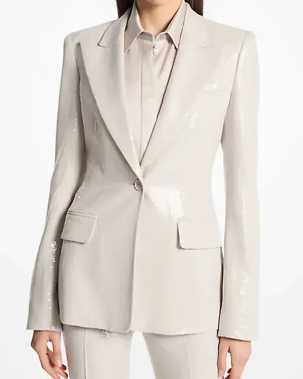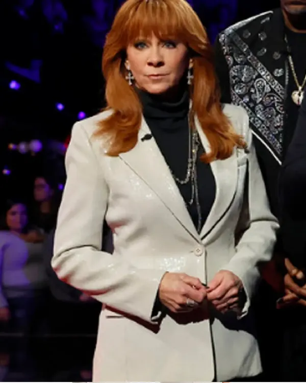 Buy The Voice S28 Reba McEntire 2025 Single-Breasted, Notched Lapel Sequin Cream Blazer