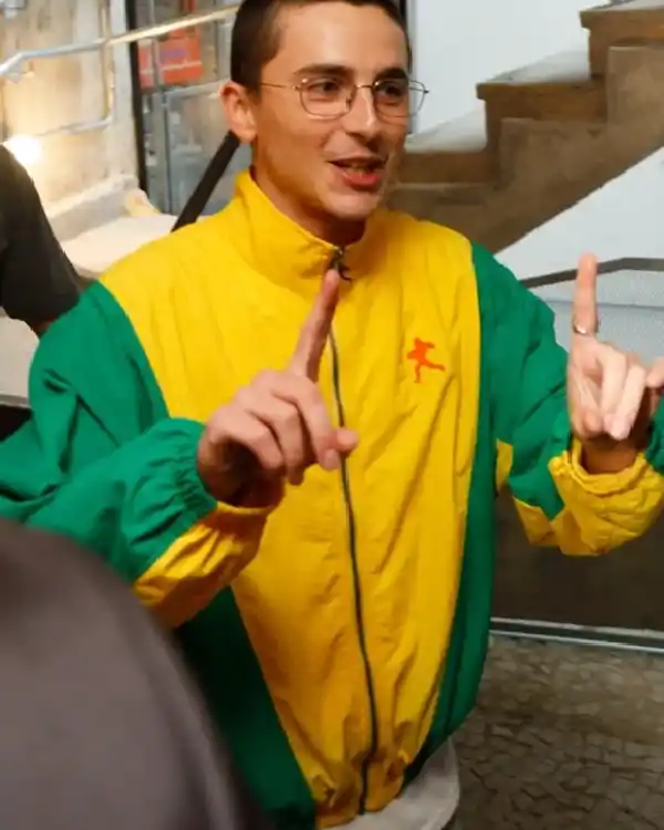 Add a vibrant touch to your wardrobe with the Timothée Chalamet Marty Supreme Brazil Jacket. Featuring a striking yellow and green color combo, this jacket brings energy and style to any outfit. Crafted from high-quality polyester with a soft viscose lining, it ensures comfort while keeping you warm. Designed with a stand-up collar, front zipper closure, and long sleeves with elastic cuffs, it combines fashion and functionality effortlessly. With two front pockets and two inner pockets, this jacket offers convenient storage for your essentials. Perfect for casual outings or layering over any outfit, the Marty Supreme Brazil Jacket is a must-have statement piece for those who love bold style.- You have 30 days from the delivery date to initiate a return or exchange.