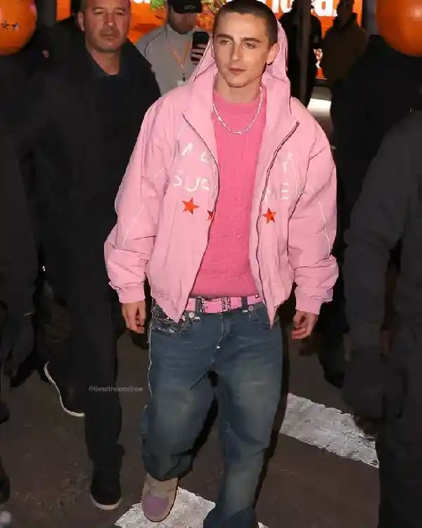 Shop Timothée Chalamet NYC Pink Marty Supreme Dream Big Jacket for Men and Women Sale