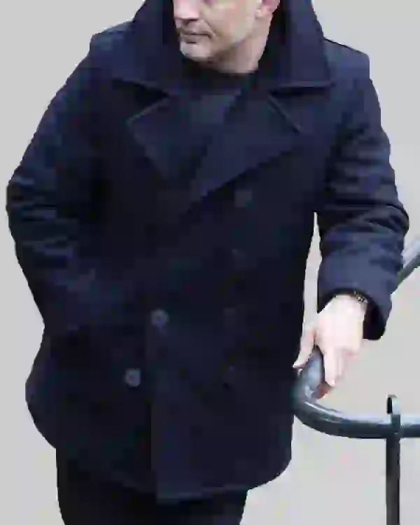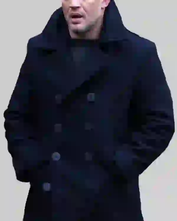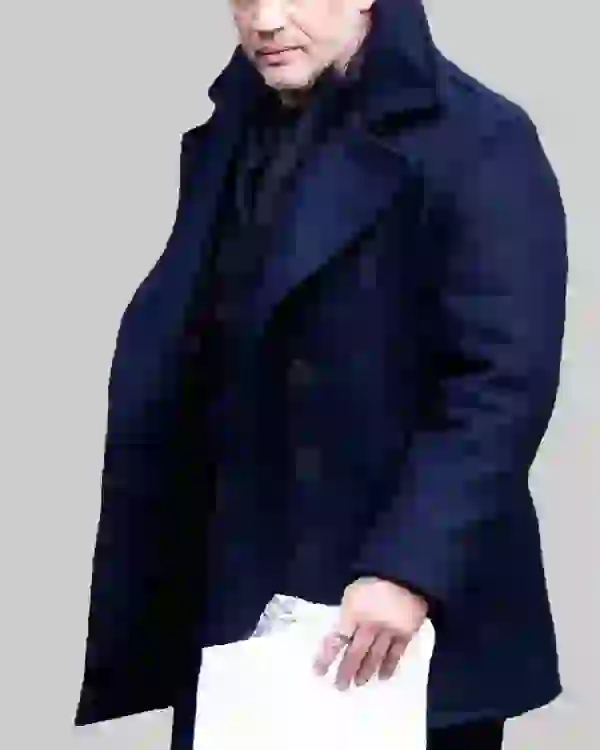 Shop Tom Hardy Navy Blue Wool Pea Coat For Sale