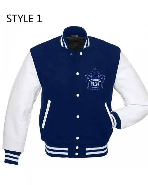 Buy NHL Toronto Maple Leafs Blue and White Varsity Letterman Jacket Sale